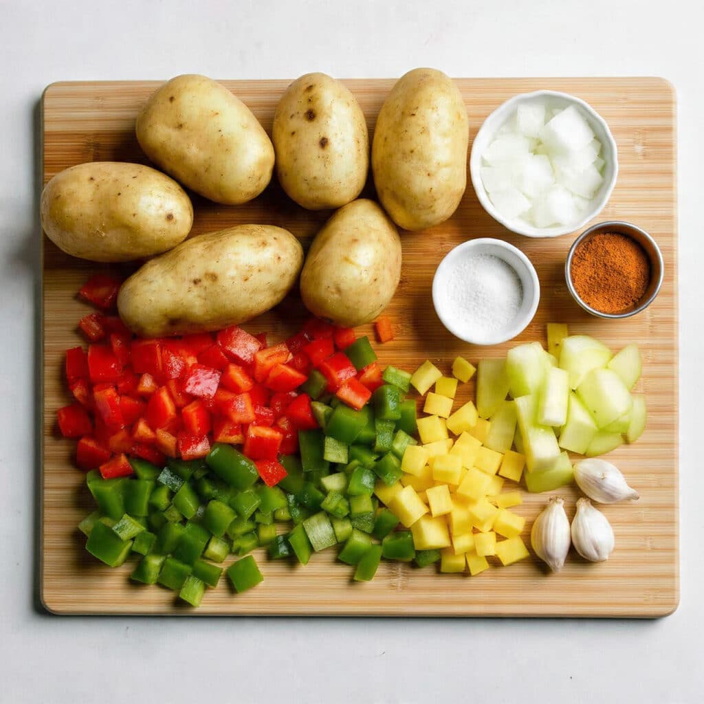 Bell Peppers: Not only do they bring that iconic pop of red and green, but they also add sweetness and brightness that balance the heartiness of the potatoes.