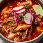 Pozole Rojo is a traditional Mexican stew made with tender pork, hominy, and a rich red chile broth. Topped with fresh garnishes like cabbage, radish, and lime, it’s a comforting, flavor-packed dish perfect for gatherings or cozy nights in.