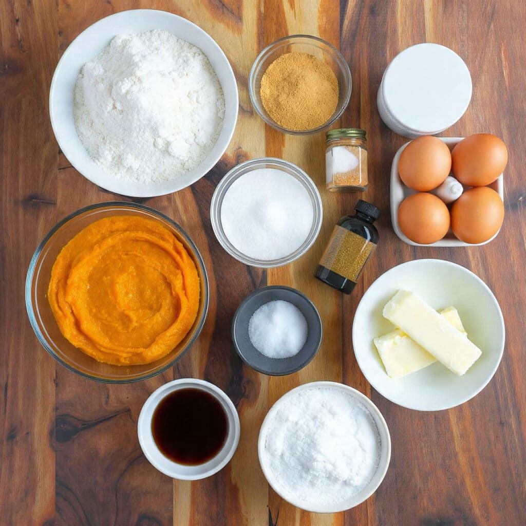 - Pumpkin Puree: ⅔ cup — brings moisture and earthy sweetness to the cake.