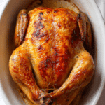 A classic whole roast chicken with crispy golden skin and juicy, tender meat infused with garlic, lemon, and fresh herbs. Simple, comforting, and perfect for any dinner table.