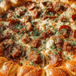 Few things bring more joy to the table than a hot, cheesy pizza fresh from the oven, and this Roni Cup Meat Lovers Pizza with Garlic Knot Crust is the kind that makes everyone stop mid-conversation. Imagine golden garlic knots forming the crust, each one brushed with buttery garlic and herbs, holding in a mountain of melted cheese, spicy pepperoni cups, and rich, savory toppings. It’s indulgent, comforting, and every bite feels like a celebration of flavor.