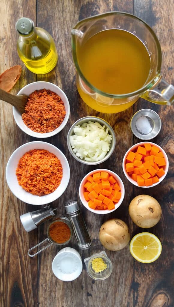 Red Lentils: These cook quickly and dissolve into the broth, creating that signature creamy body without dairy.