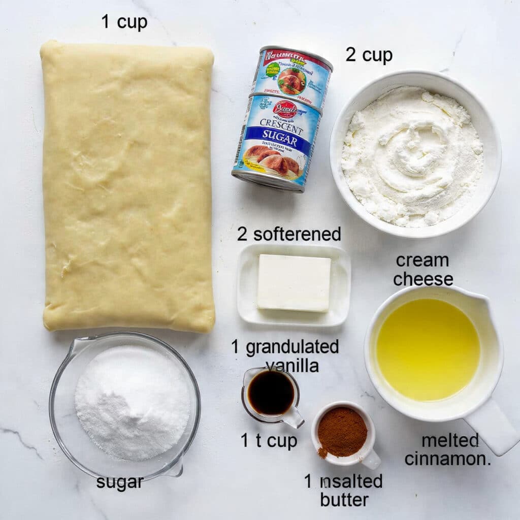1. Crescent Roll Dough: 2 cans (8 oz each) — Forms the soft, flaky crust that holds the bars together.