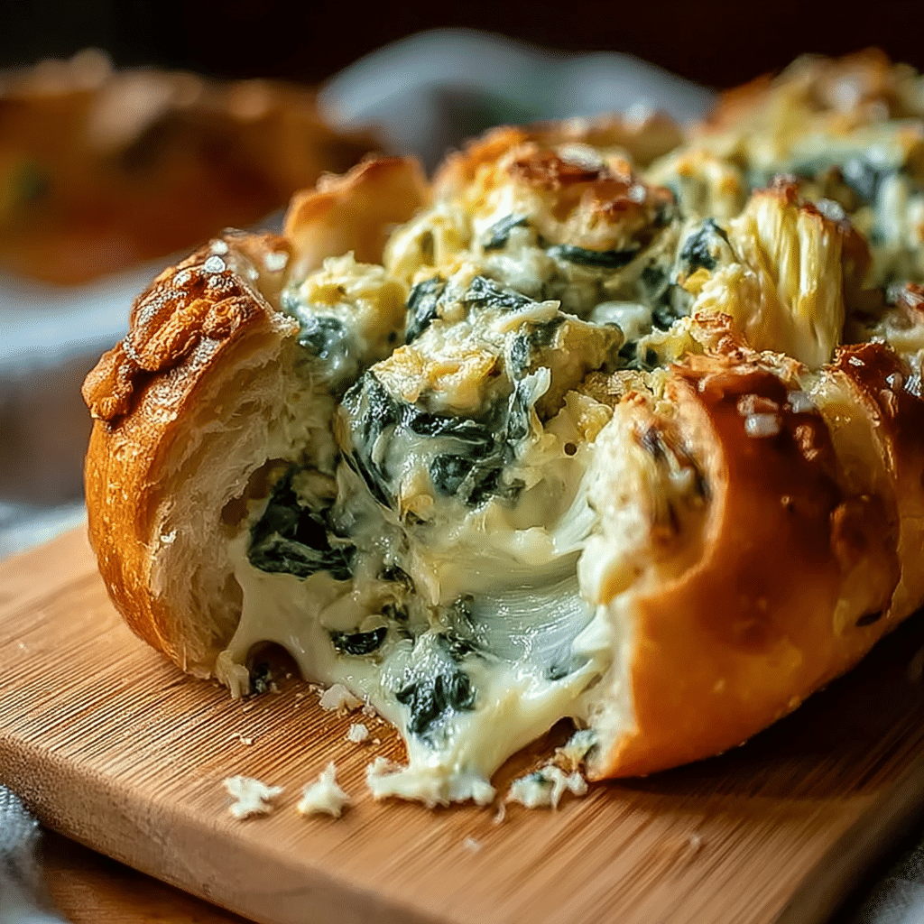 There’s something magical about tearing into a warm, golden loaf of bread, only to discover a luscious, creamy spinach artichoke dip tucked inside. Every bite brings together the crunch of the crust, the fluffiness of the bread, and the decadent richness of the cheesy filling. It’s comforting, playful, and indulgent all at once, the kind of dish that feels like a centerpiece for gatherings yet cozy enough for a weeknight treat.