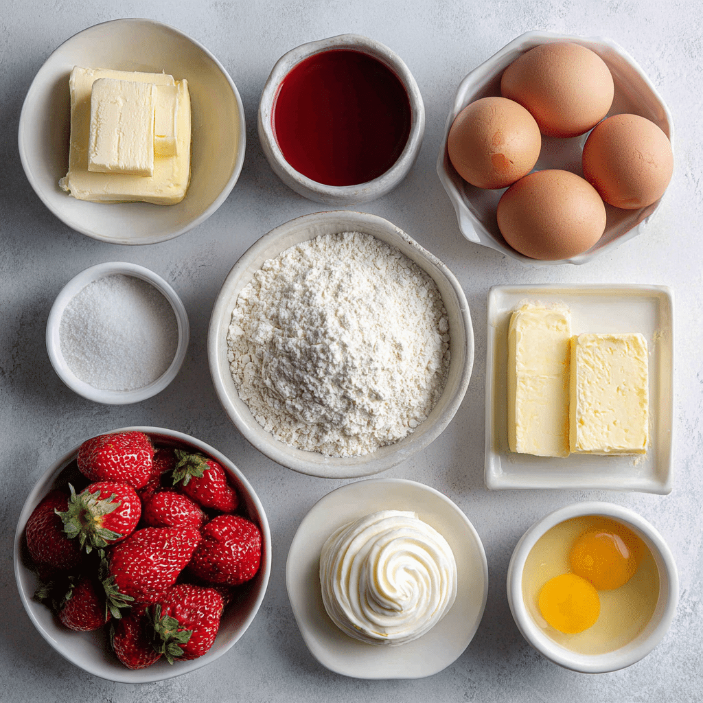 A tender, buttery strawberry cake made with fresh berries, a soft crumb, and a creamy strawberry buttercream that brings natural sweetness and a hint of summer in every bite.