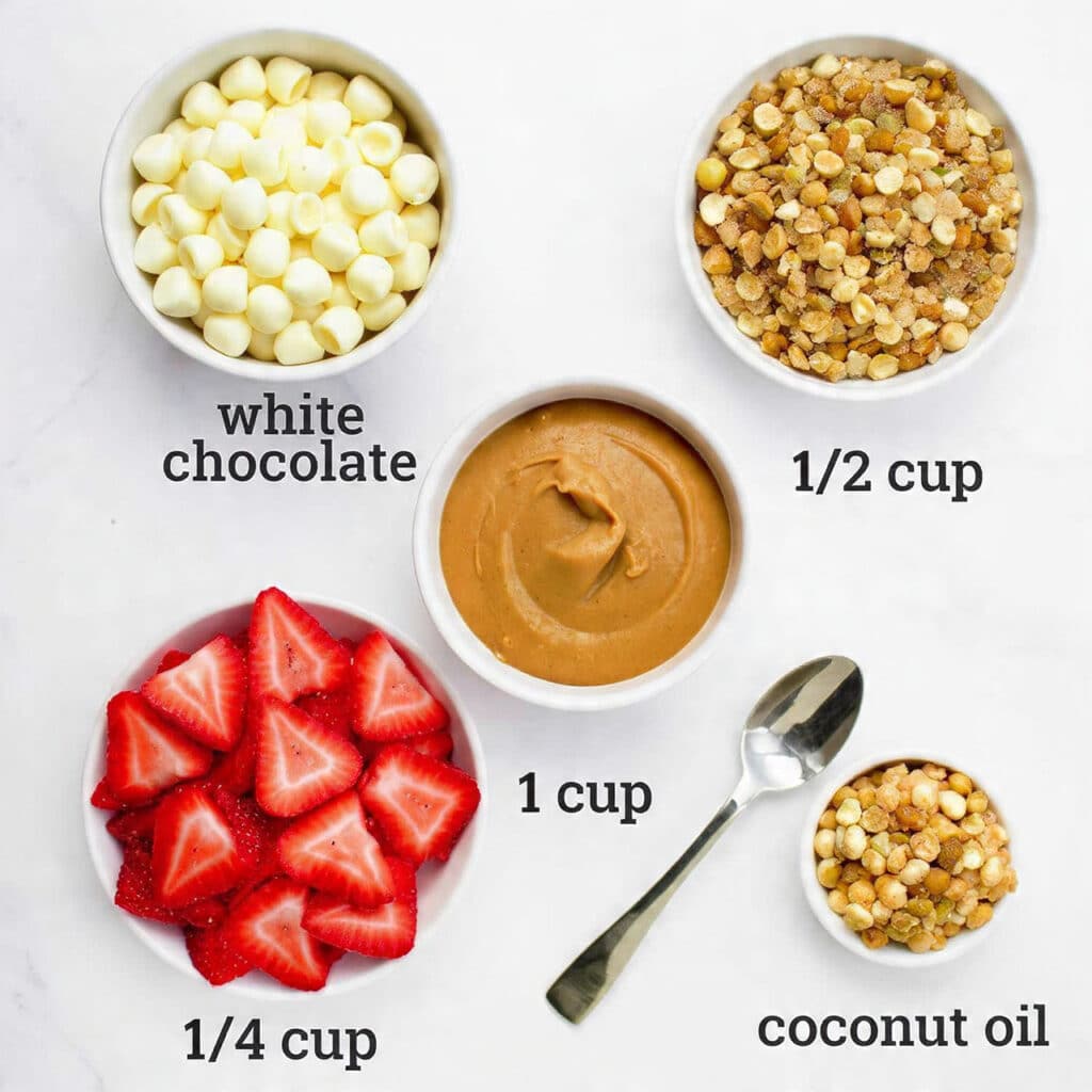 1. In a microwave-safe bowl, melt the white chocolate chips with coconut oil (if using) in 20-second bursts, stirring until smooth.