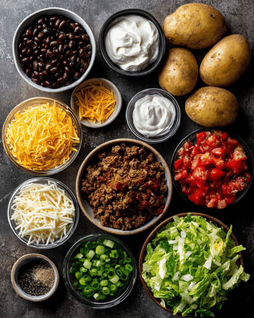- Russet Potatoes: 4 large, scrubbed and dried — the sturdy base that holds all the toppings.