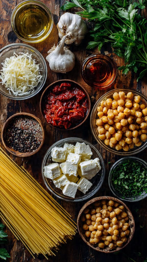 This dish brings together familiar pantry ingredients and turns them into something that feels special. The sauce clings to the pasta, the chickpeas add a satisfying bite, and the feta melts just enough to become creamy while keeping those irresistible crispy edges. It is the kind of meal that feels indulgent without being heavy, and it always disappears faster than expected.