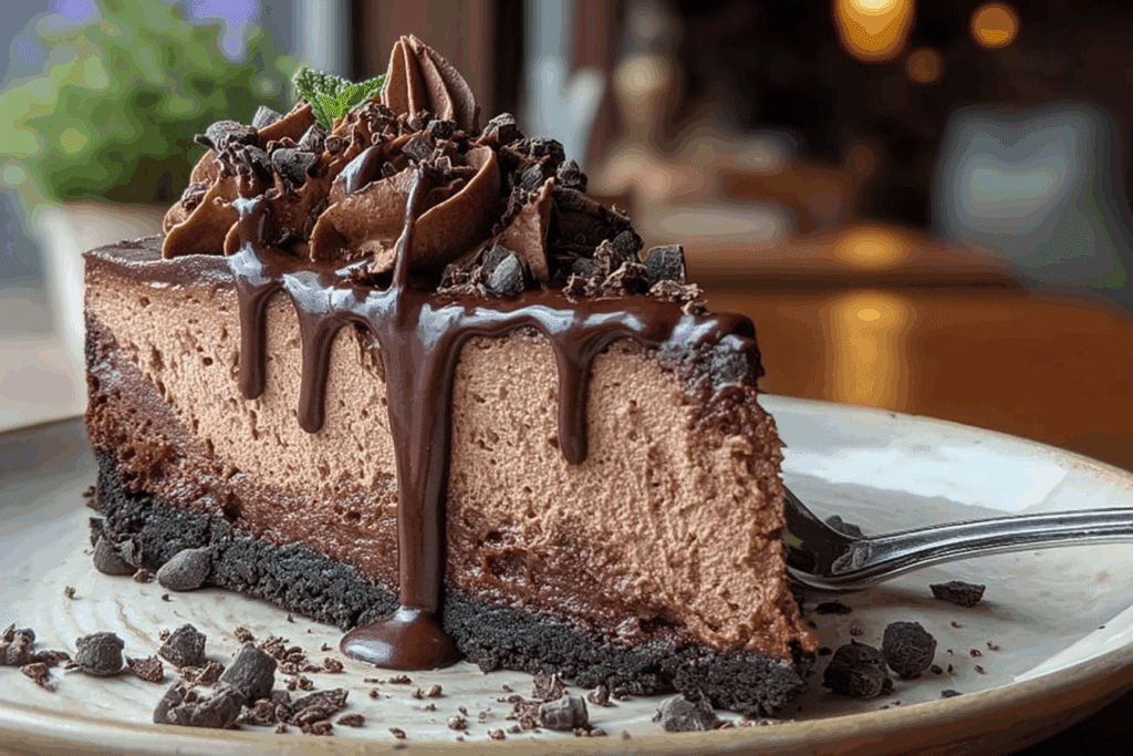 Keywords: Triple Chocolate Cheesecake, Oreo Crust Cheesecake, Chocolate Dessert, Creamy Cheesecake, Layered Chocolate Cake