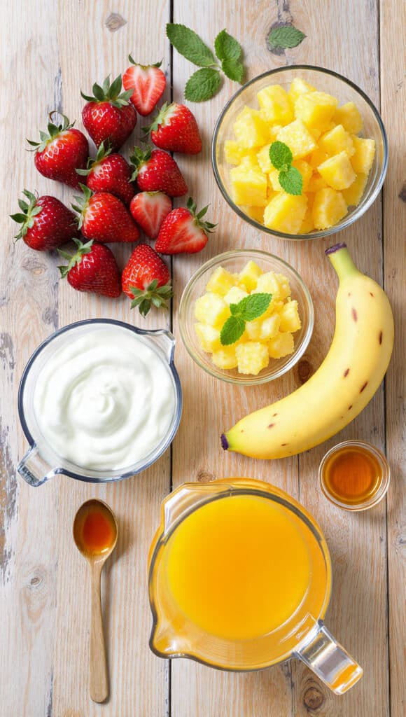 - Strawberries: 1 cup, hulled, adds natural sweetness and color.