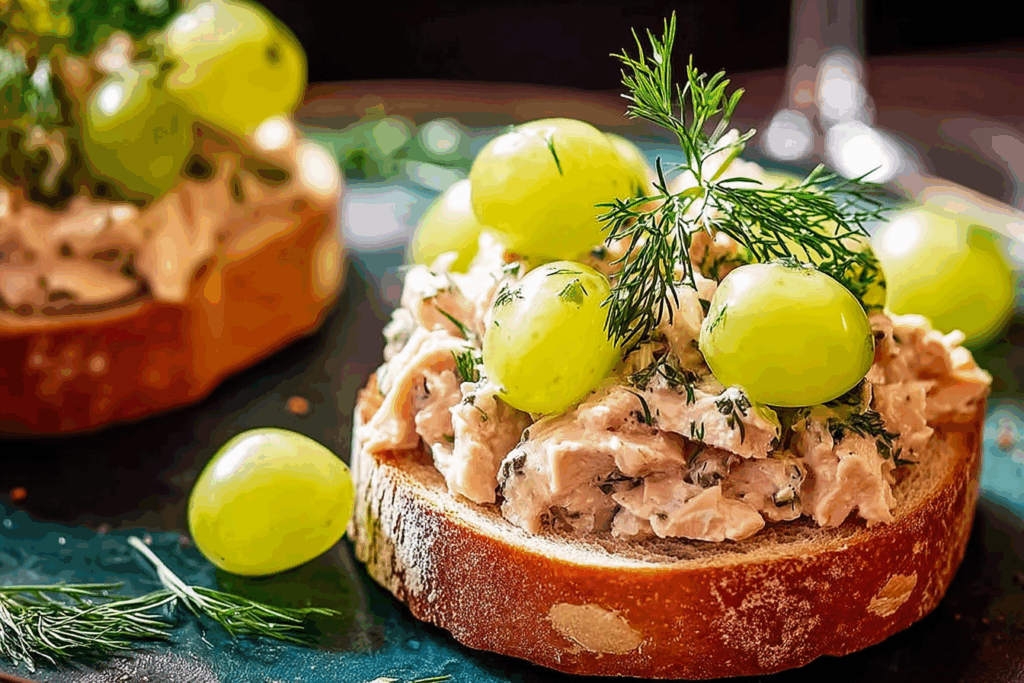 A creamy and elegant spread made with tender trout, fresh dill, and juicy green grapes. This light yet flavorful dish is perfect for appetizers, picnics, or a refined starter that feels both rustic and luxurious.