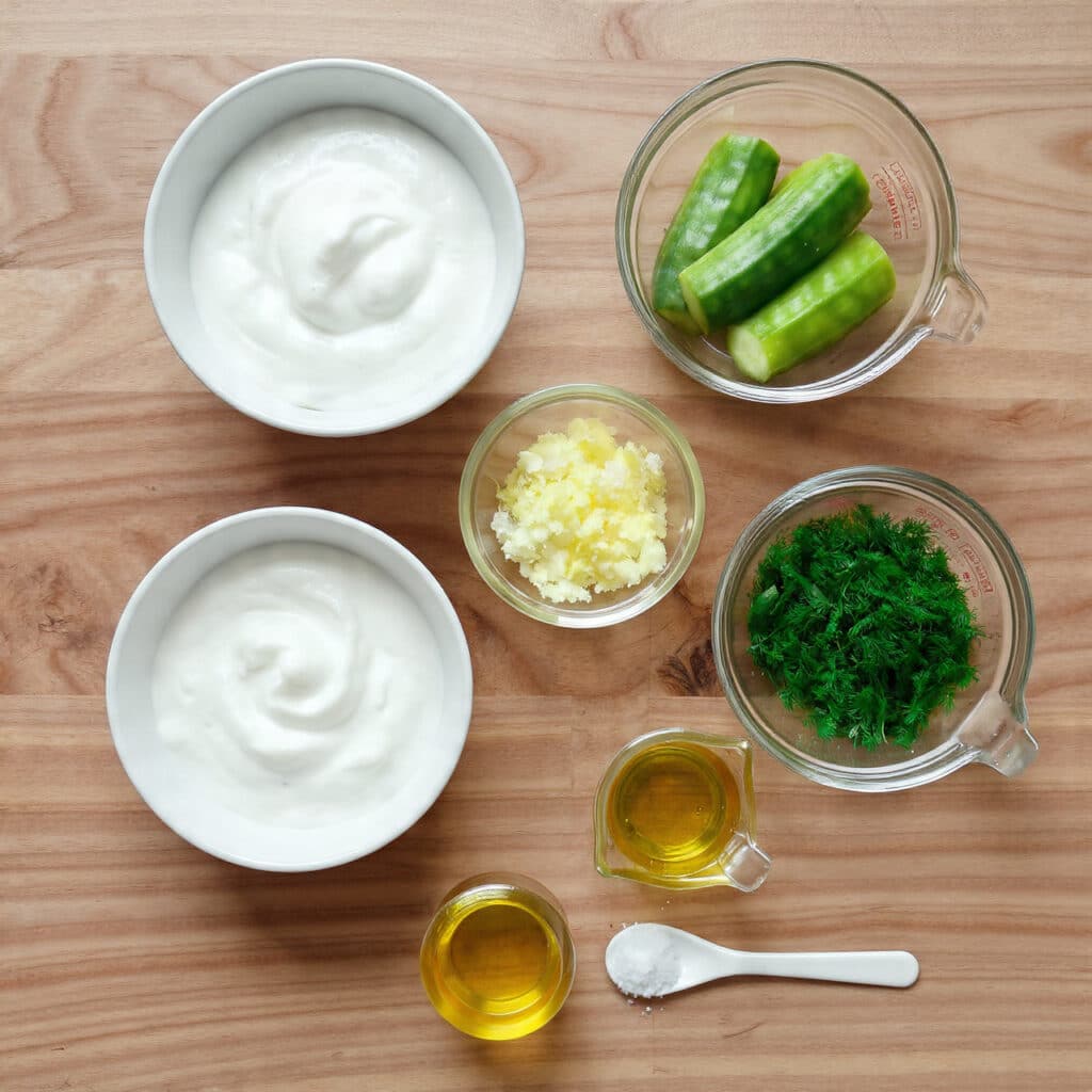 1. Greek Yogurt: 1 cup. The rich and tangy base that gives tzatziki its signature creaminess.