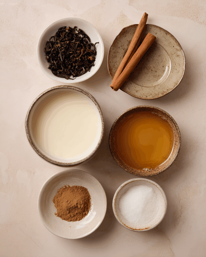 - Whole Milk: 1 cup – adds creamy smoothness and softens the tea’s strength.