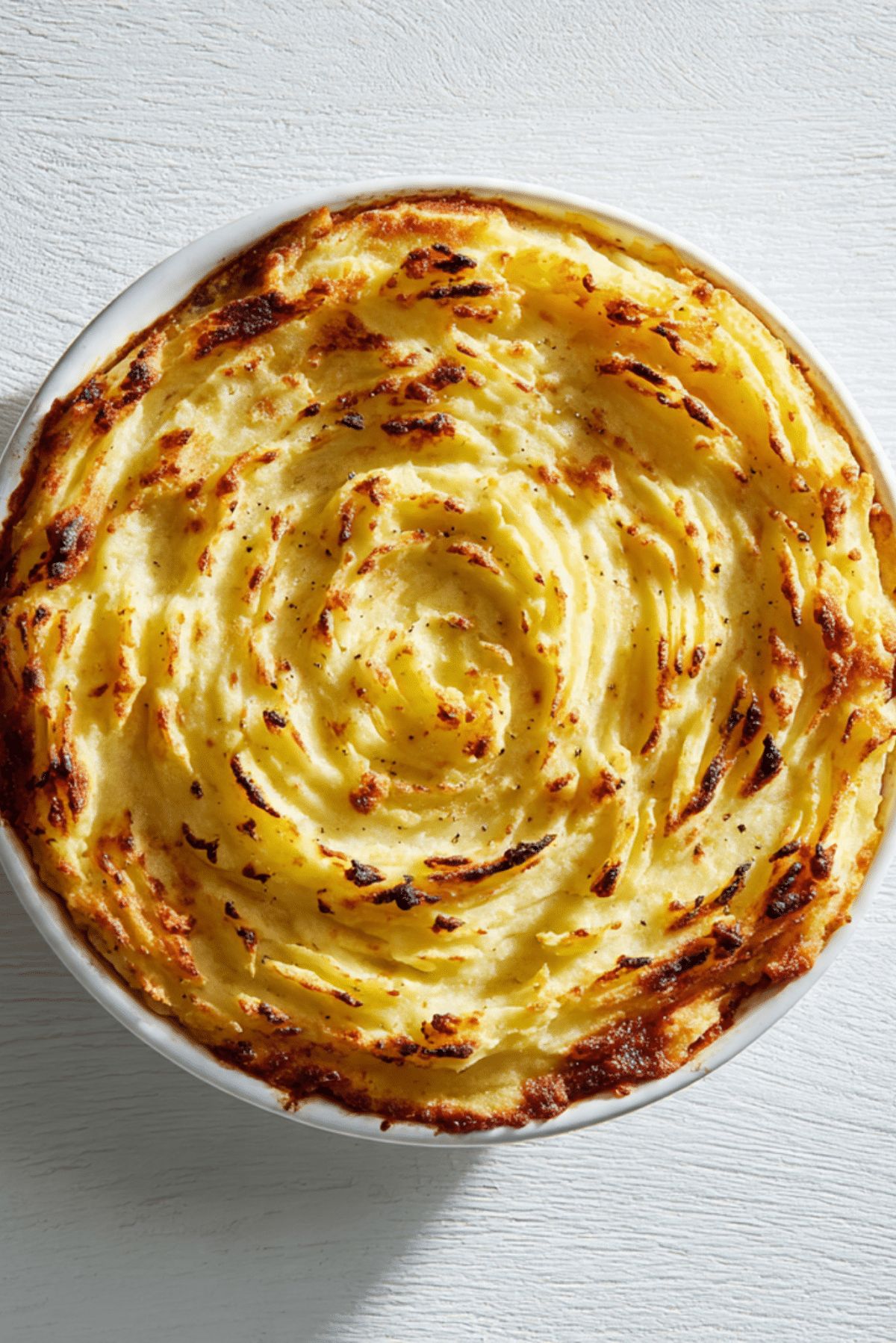 - Pipe the mashed potatoes on top using a star tip for a decorative edge.