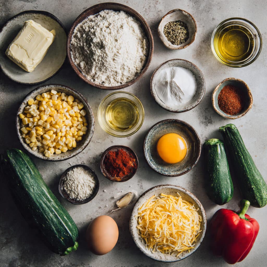 Heat olive oil in a skillet over medium heat. Sauté onion, bell pepper, zucchini, corn, and garlic until softened. Stir in cumin, paprika, salt, and pepper. Remove from heat and let cool, then mix in the cheese. - Assemble the Dish: