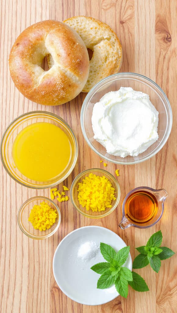 A creamy, citrus-kissed bagel topped with smooth yuzu cream cheese, lightly sweetened with honey and finished with fresh mint for a bright and refreshing bite.